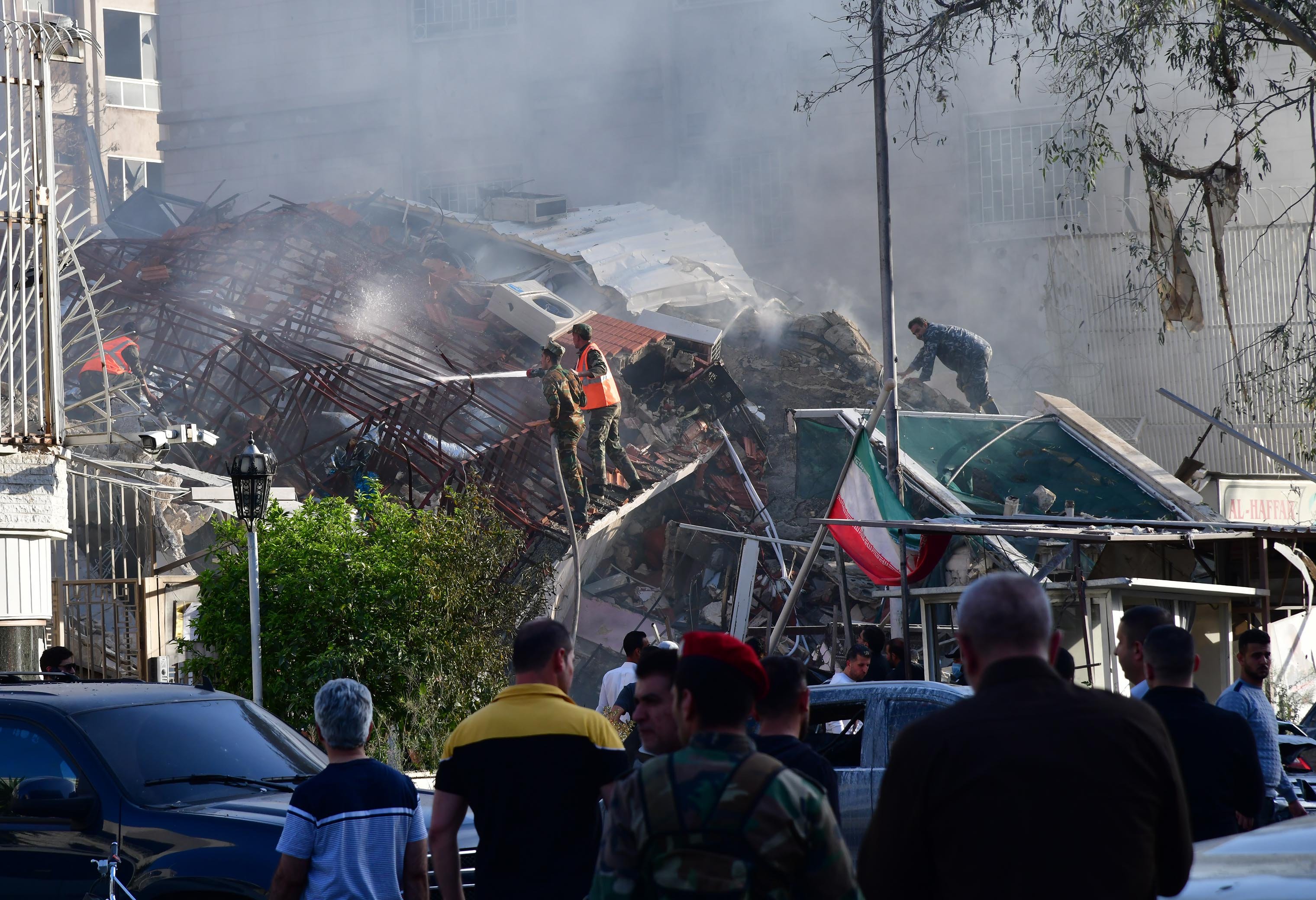 Emergency services and rescue teams work among the rubble of the Iranian consulate in Damascus, Syria. Iran has accused Israel of carrying out an airstrike on the building in Syria's capital, killing eight people, including two Iranian generals of the Revolutionary Guard. — Photo: Ammar Safarjalani/Xinhua/ZUMA