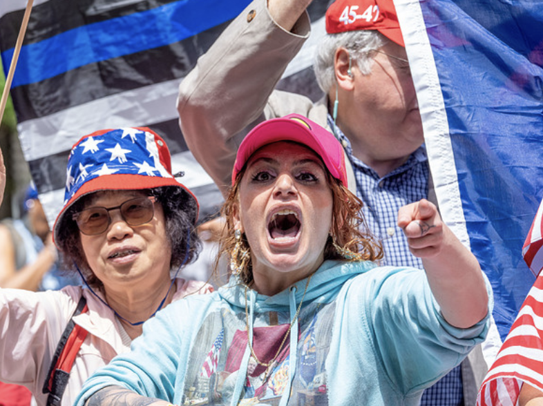 Supporters of former U.S. President Donald Trump seen outside court in Manhattan during the closing arguments in the Trump hush money trial. Prosecutors and defense lawyers delivered closing arguments to the jury yesterday, after more than four weeks. Trump’s defense lawyers spoke first in the closing arguments, which lasted over two hours and focused on issues surrounding Trump’s former “fixer” Michael Cohen. Prosecutors then spent six hours refuting claims made by the defense, highlighting the validity of certain witnesses, Trump's business practices and election concerns. The 12 person jury is set to begin deliberating today, but it could be days or even weeks before they come to a decision. — Photo: Carlos Chiossone/ZUMA