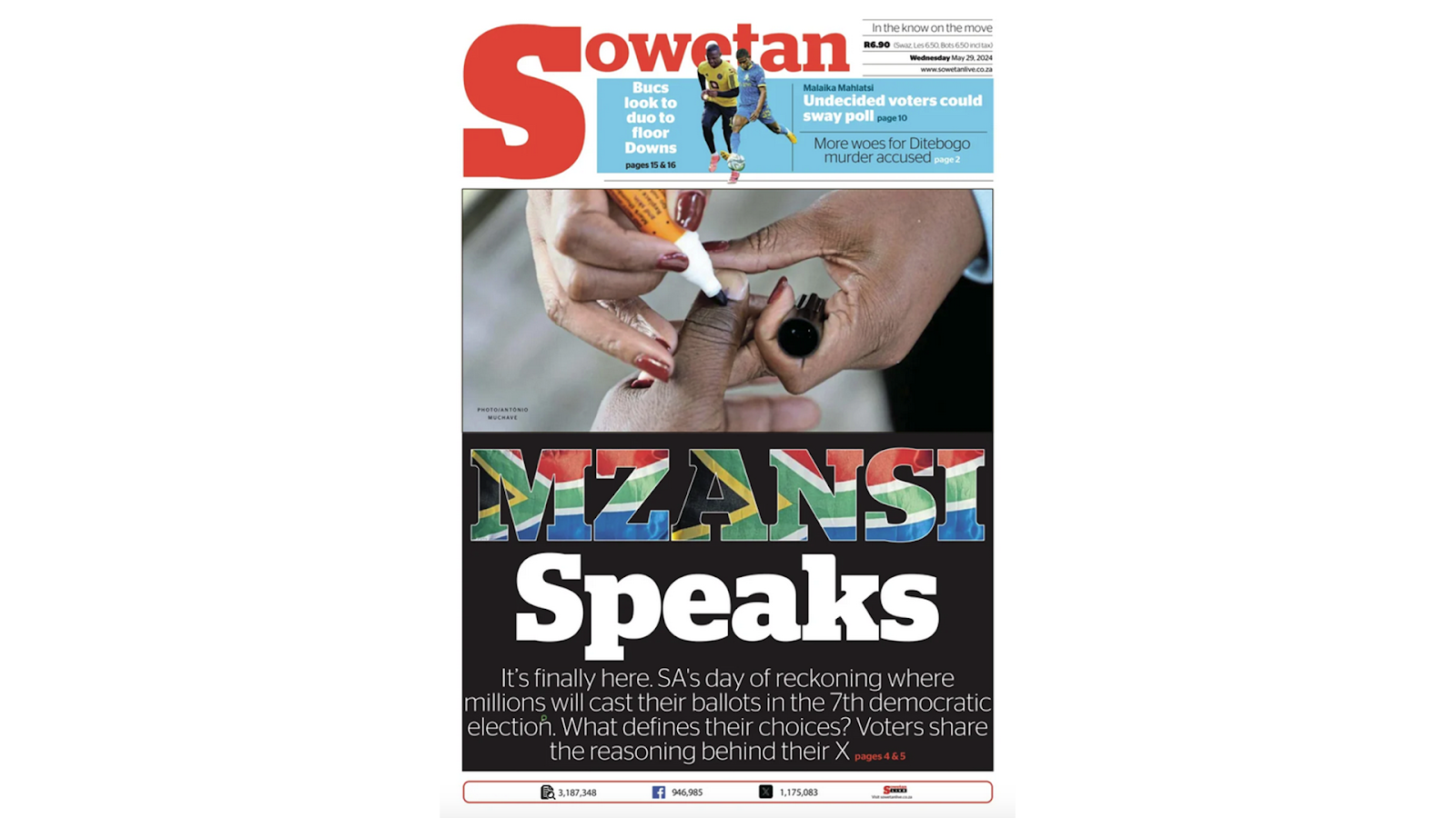 “It’s finally here,” writes Johannesburg-based daily The Sowetan, as South Africa (or “Mzansi”, its colloquial name derived from the Xhosa language) gets ready to vote in a high-stakes election today. More than 27 million people are registered to participate in the election, which could see the ruling African National Congress (ANC) lose its majority for the first time since 1994, due to high unemployment and crime levels. Even so, current President Cyril Ramaphosa is expected to remain in office, unless the party’s performance is worse than expected.