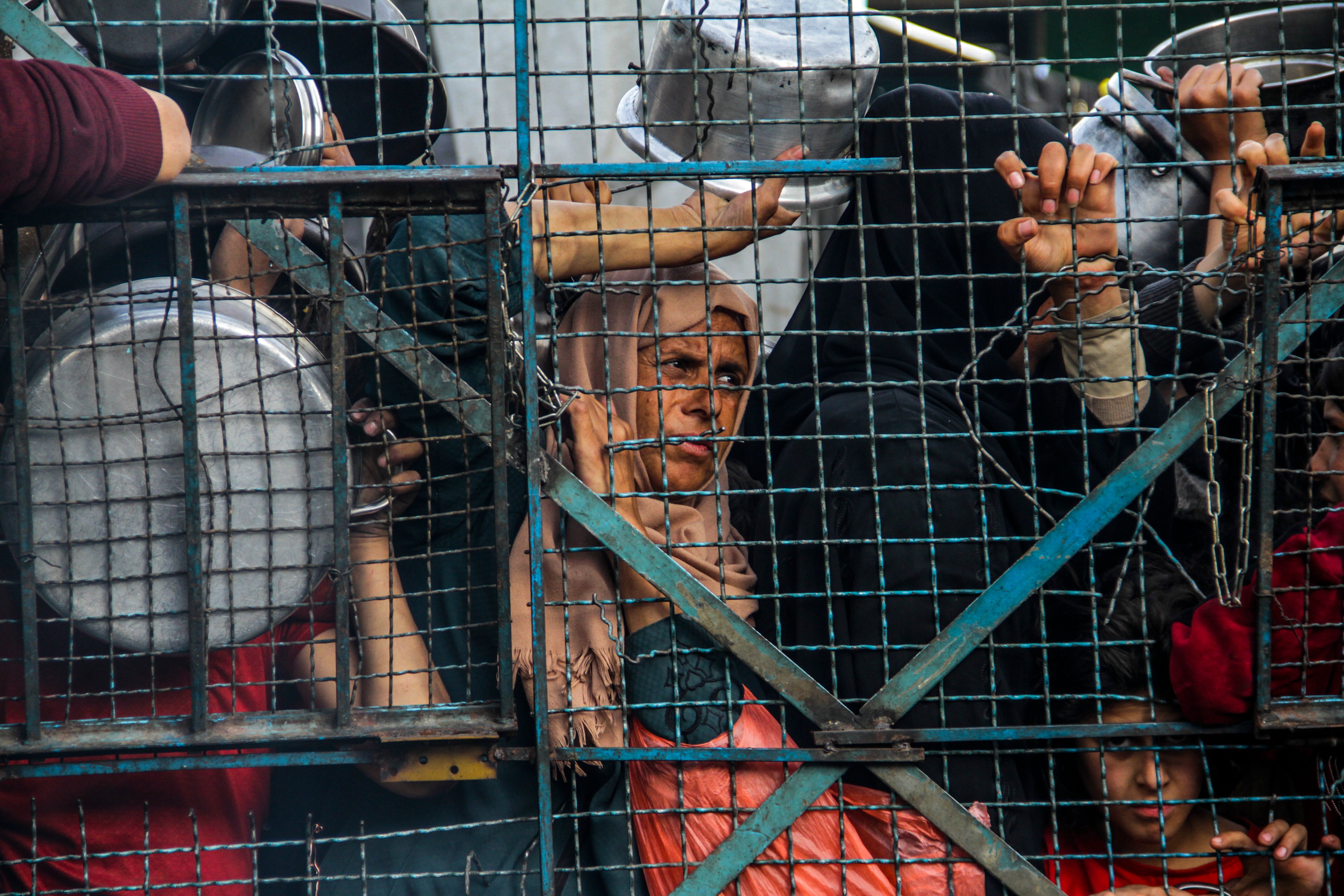 Palestinians line up as food is distributed in Gaza’s Jabalia refugee camp. A United Nations official said that Israel’s restrictions to humanitarian aid in Gaza may amount to a war crime. — Photo: Mahmoud Issa/dpa/ZUMA