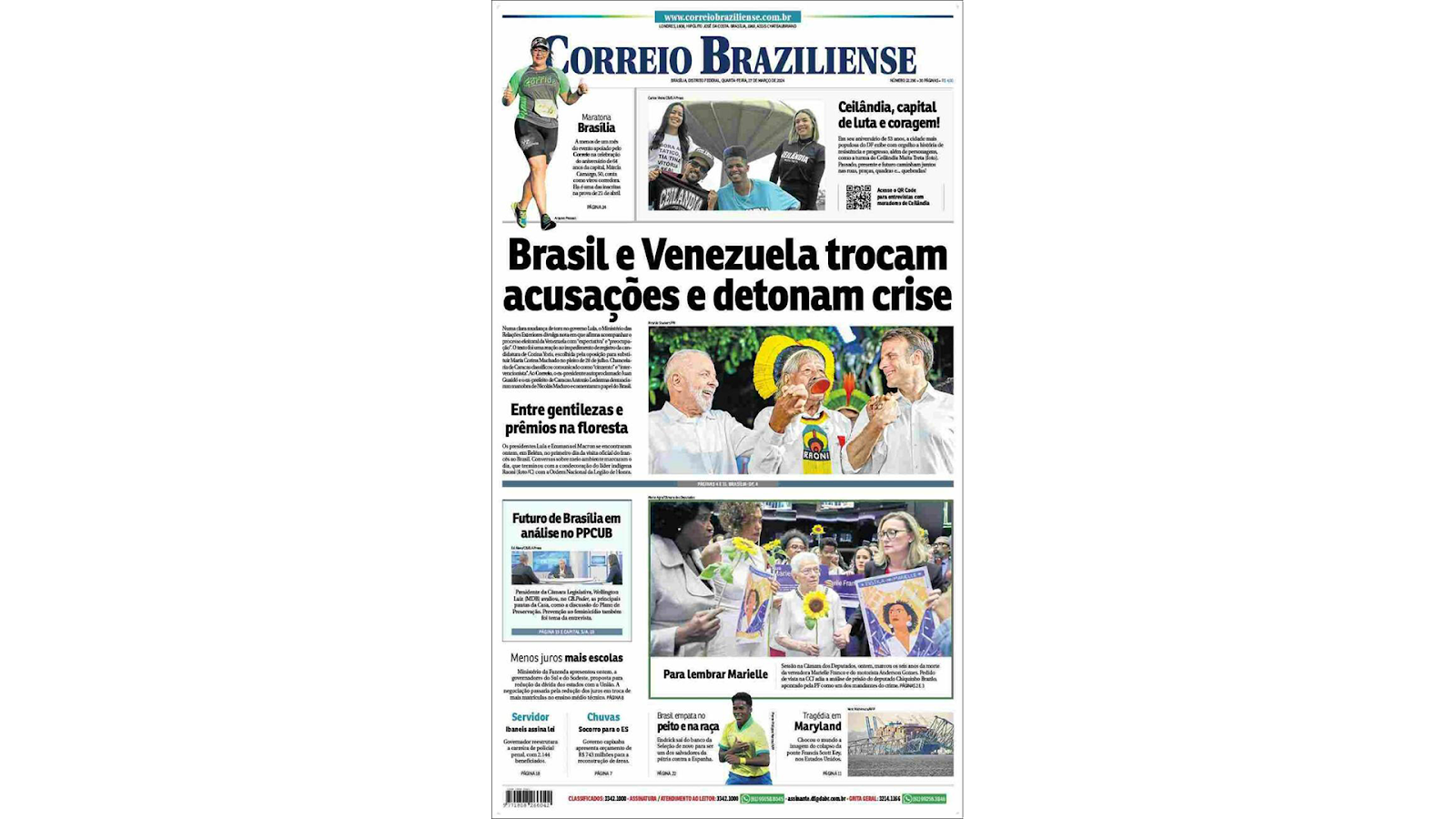 Brasilia-based daily Correio Braziliense features a photo of the meeting between Brazilian President Luiz Inacio “Lula” da Silva, Indigenous leader Raoni Metuktire and French President Emmanuel Macron on its front page. During Macron’s three-day official visit to Brazil, he and his Brazilian counterpart announced a plan to invest 1 billion euros in the Amazon rainforest. The investment project will be a collaboration between Brazilian state banks and France’s national investment agency. The project aims to repair the relationship between the two countries post-Bolsonaro, and deepen cooperation to protect the vital rainforest. Read more about protecting the rainforest on Worldcrunch.