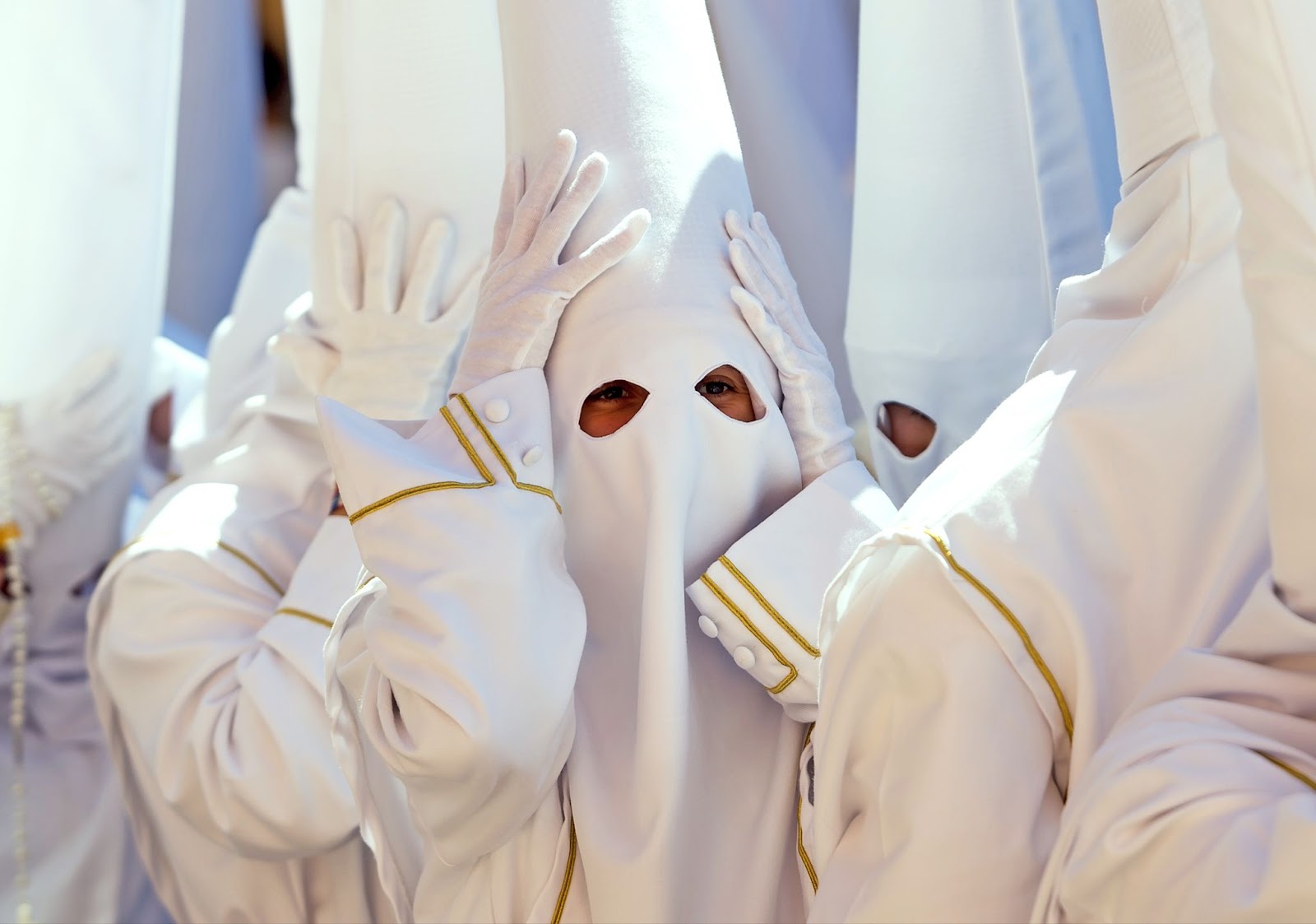 A penitent adjusts his hood as he takes part in a Holy Tuesday procession in Malaga, Spain, where thousands of worshippers wait to see the processions with the statues of Christ and the Virgin Mary as part of the traditional Holy Week celebrations. In Andalusia, Easter brings together crowds from around the world and is considered one of the most important religious and cultural events of the year. — Photo: Jesus Merida/SOPA Images via ZUMA