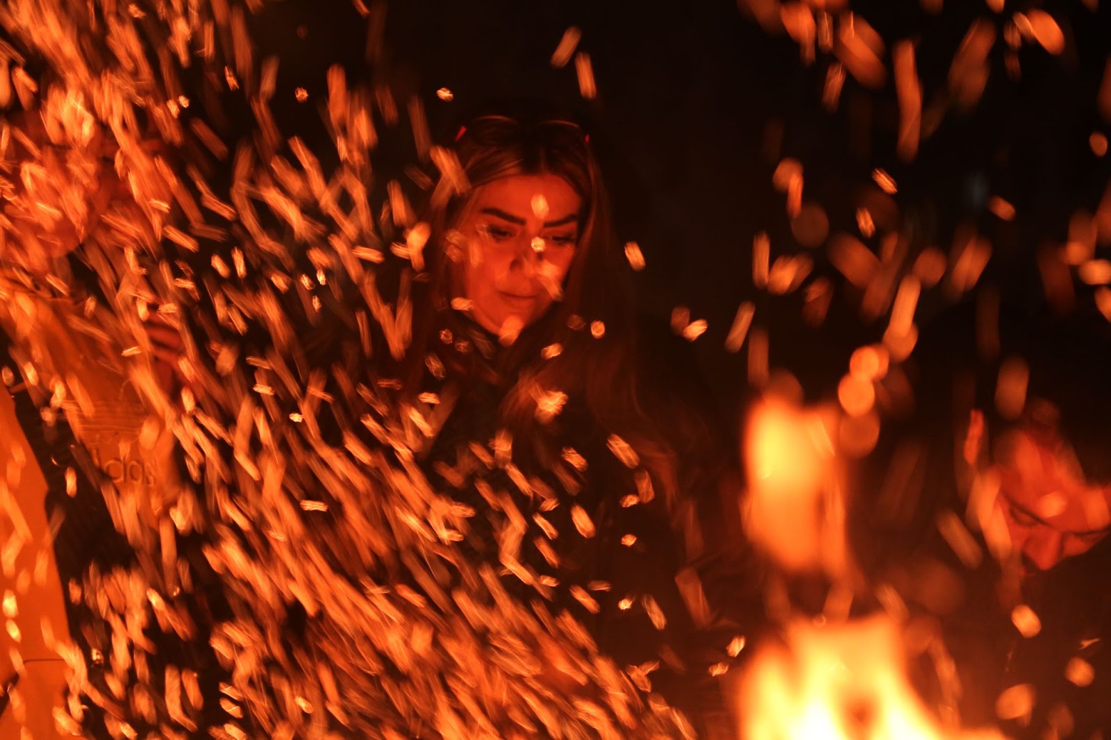 A woman looks at a bonfire in Tehran as part of Iran’s Fire Festival (or Chaharshanbeh Soori), held annually on the last Wednesday eve before the Spring holiday of Nowruz. According to Iran’s Emergency Services, at least 15 people have died and an estimated 4,720 have been injured in incidents linked to the fire festival, which involves pyrotechnic displays and jumping over bonfires. — Photo: Rouzbeh Fouladi/ZUMA